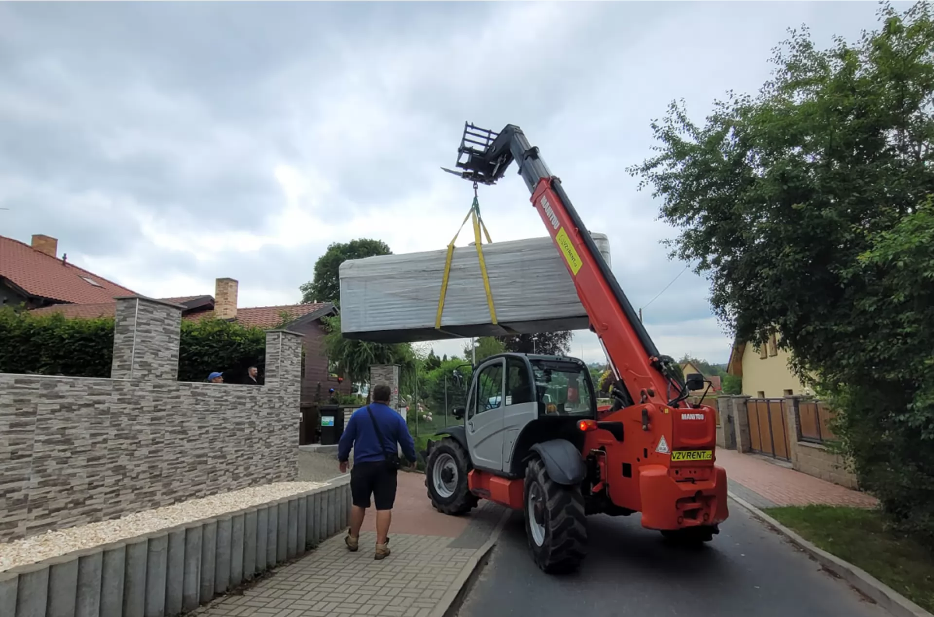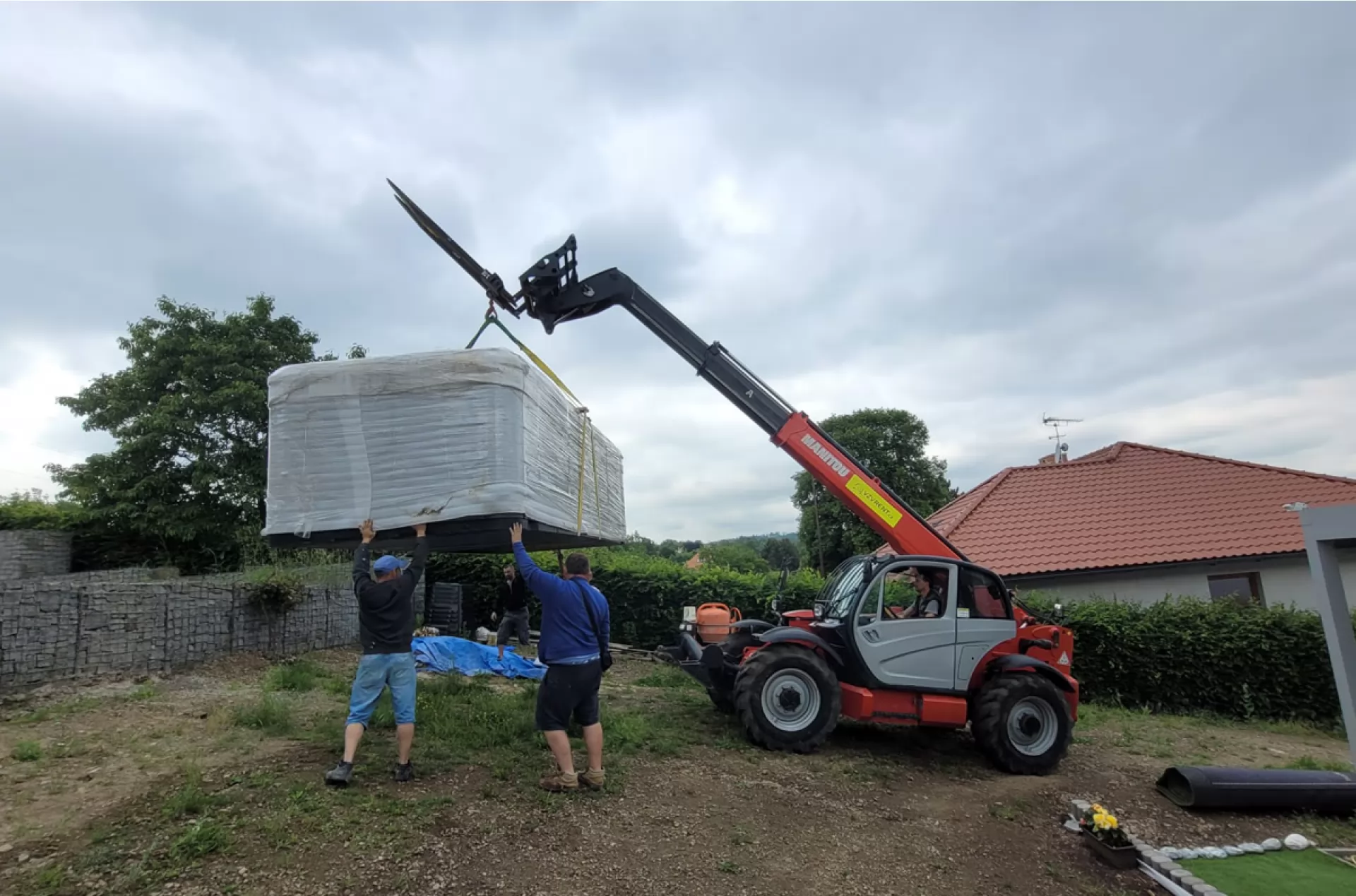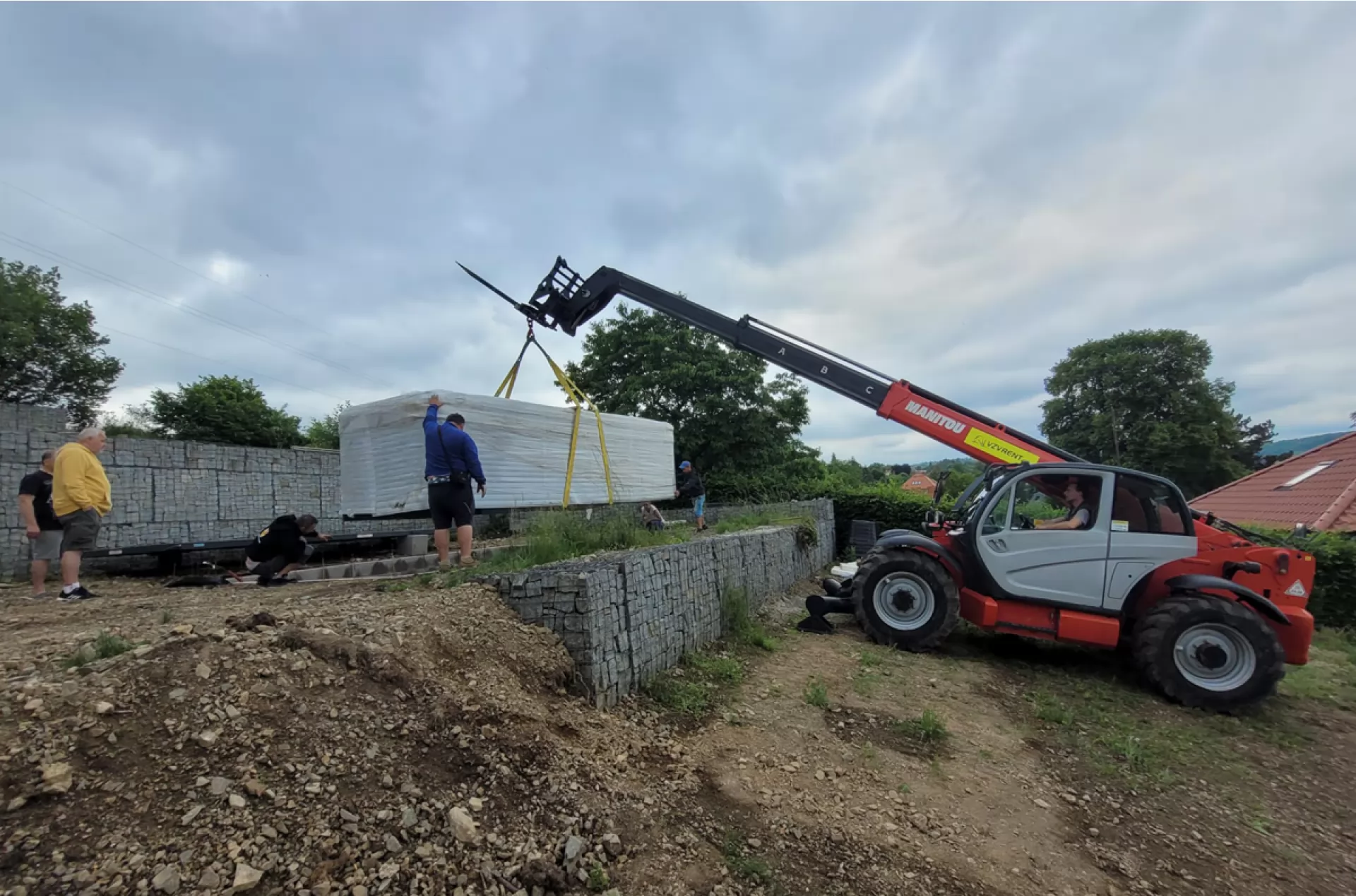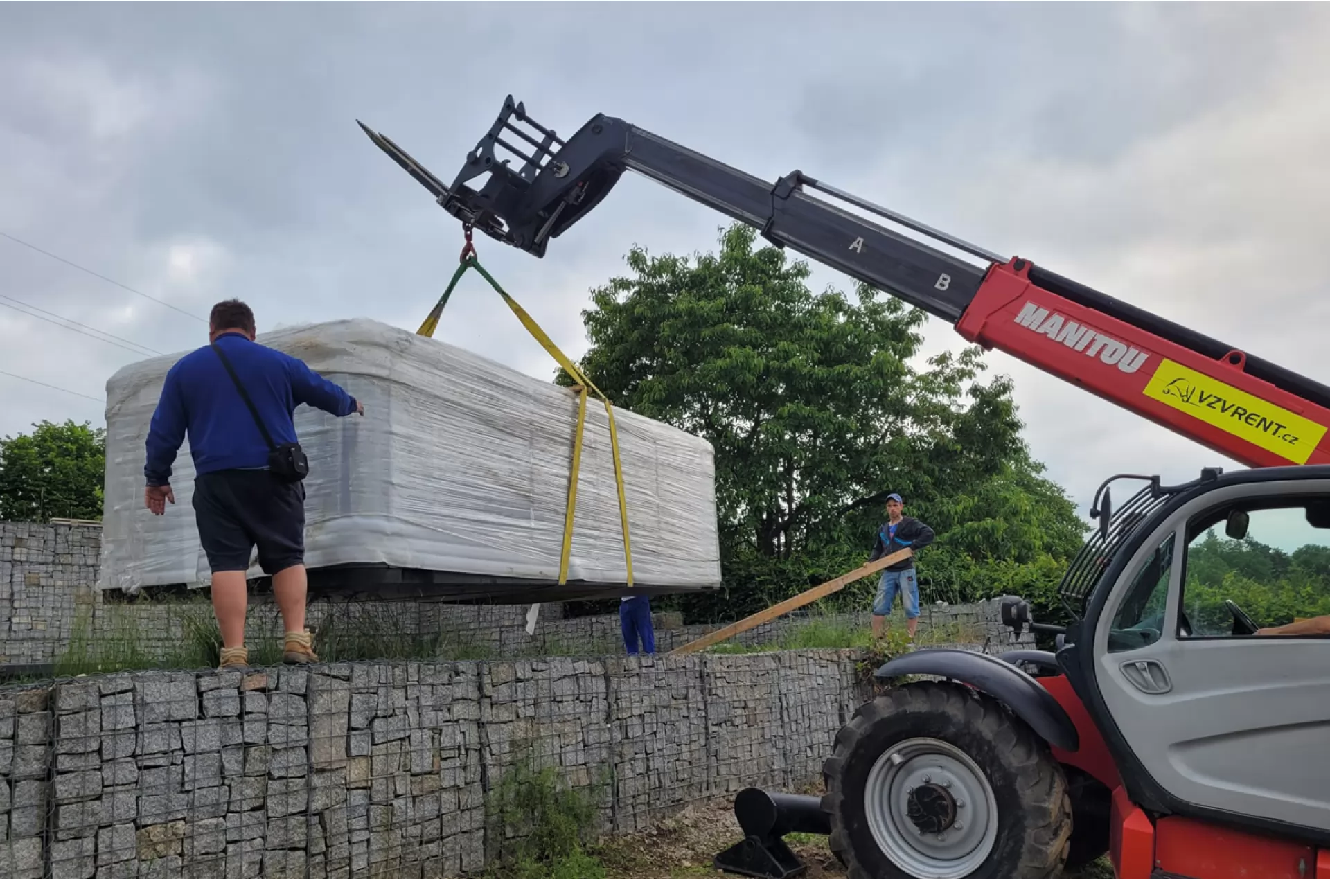 We rented a telescopic handler Manitou MT 1840 from our VZVRENT rental company to a client in Sázava. Our experienced driver with the manipulator settled the giant whirlpool here. The advantage of the manipulator is their telescopic arm, thanks to it they can manipulate with load even over an obstacle, as was the case here as well.