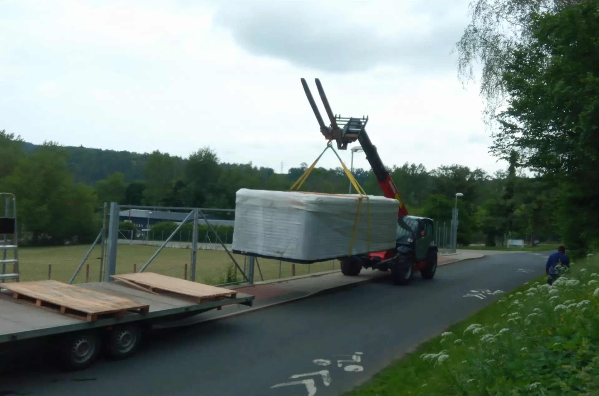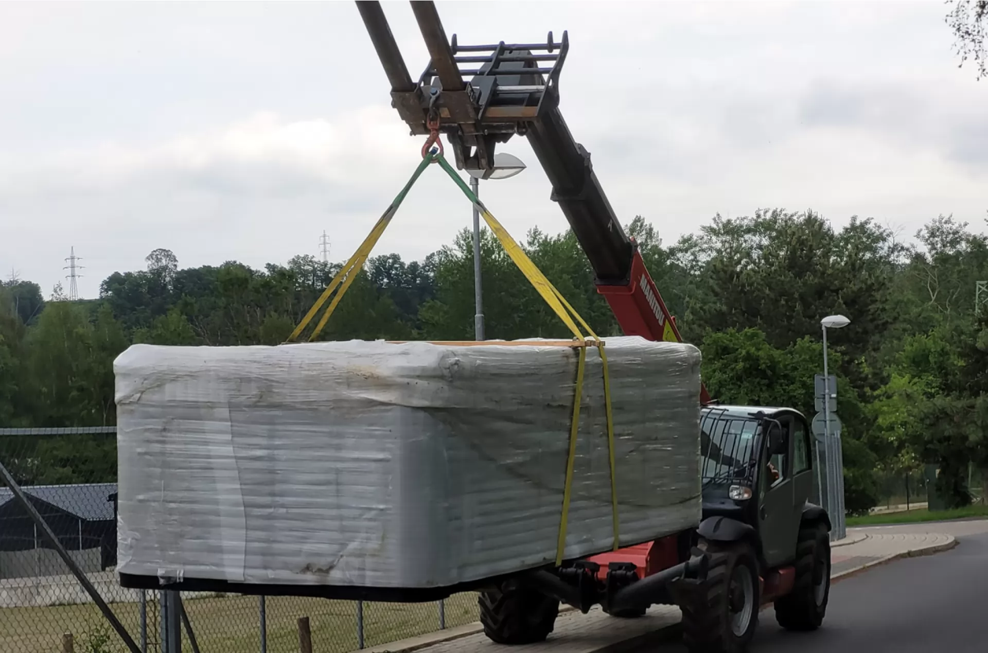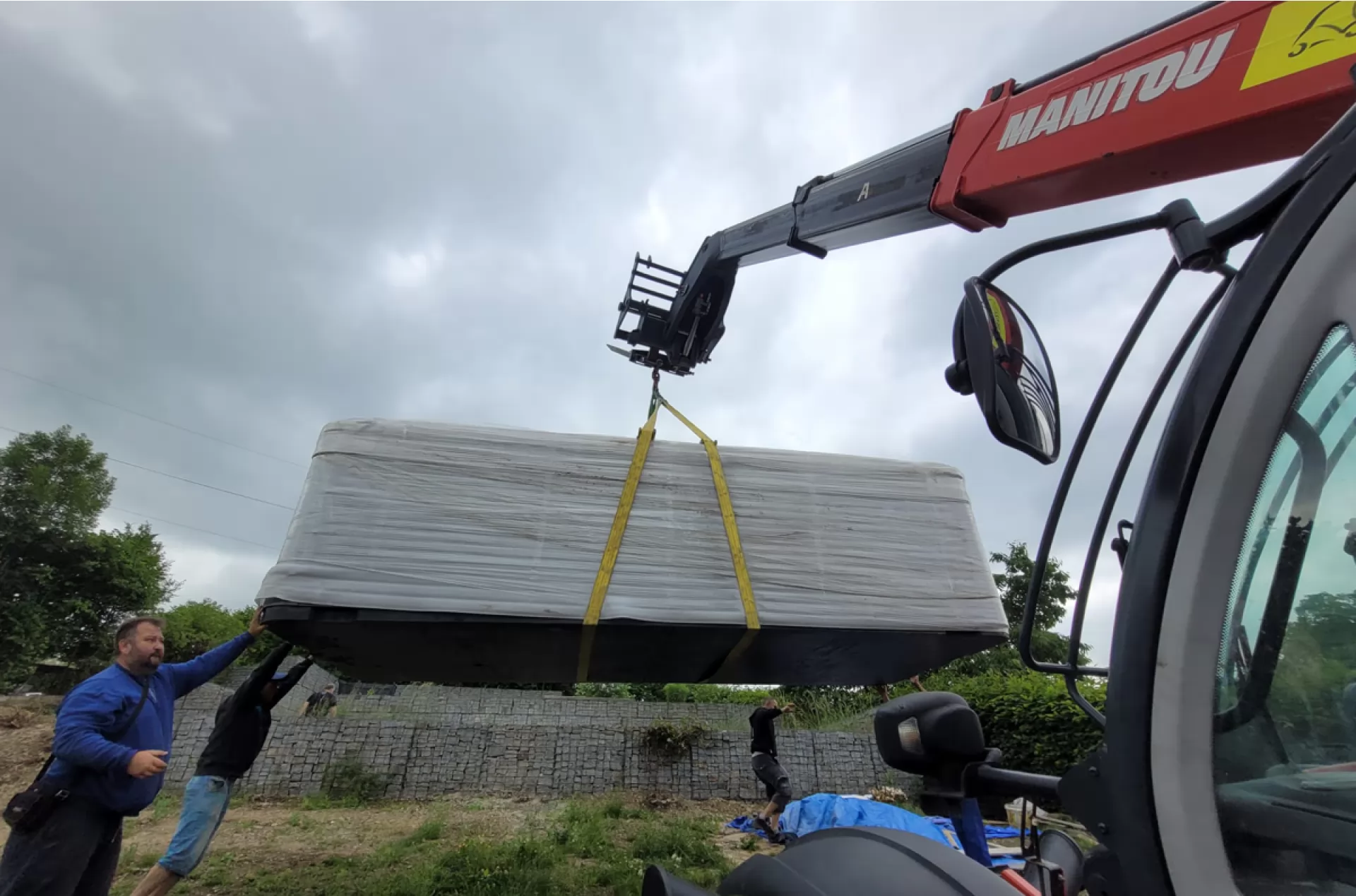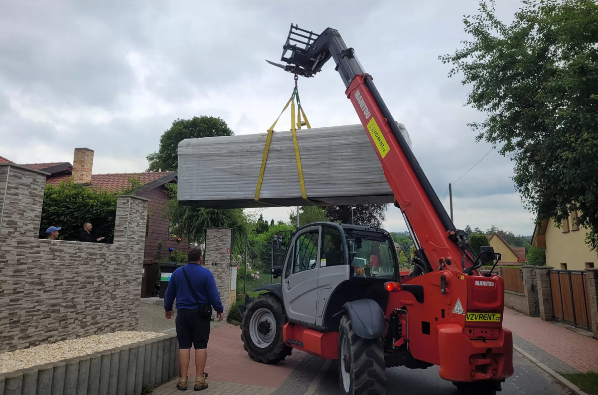 We rented a telescopic handler Manitou MT 1840 from our VZVRENT rental company to a client in Sázava. Our experienced driver with the manipulator settled the giant whirlpool here. The advantage of the manipulator is their telescopic arm, thanks to it they can manipulate with load even over an obstacle, as was the case here as well.