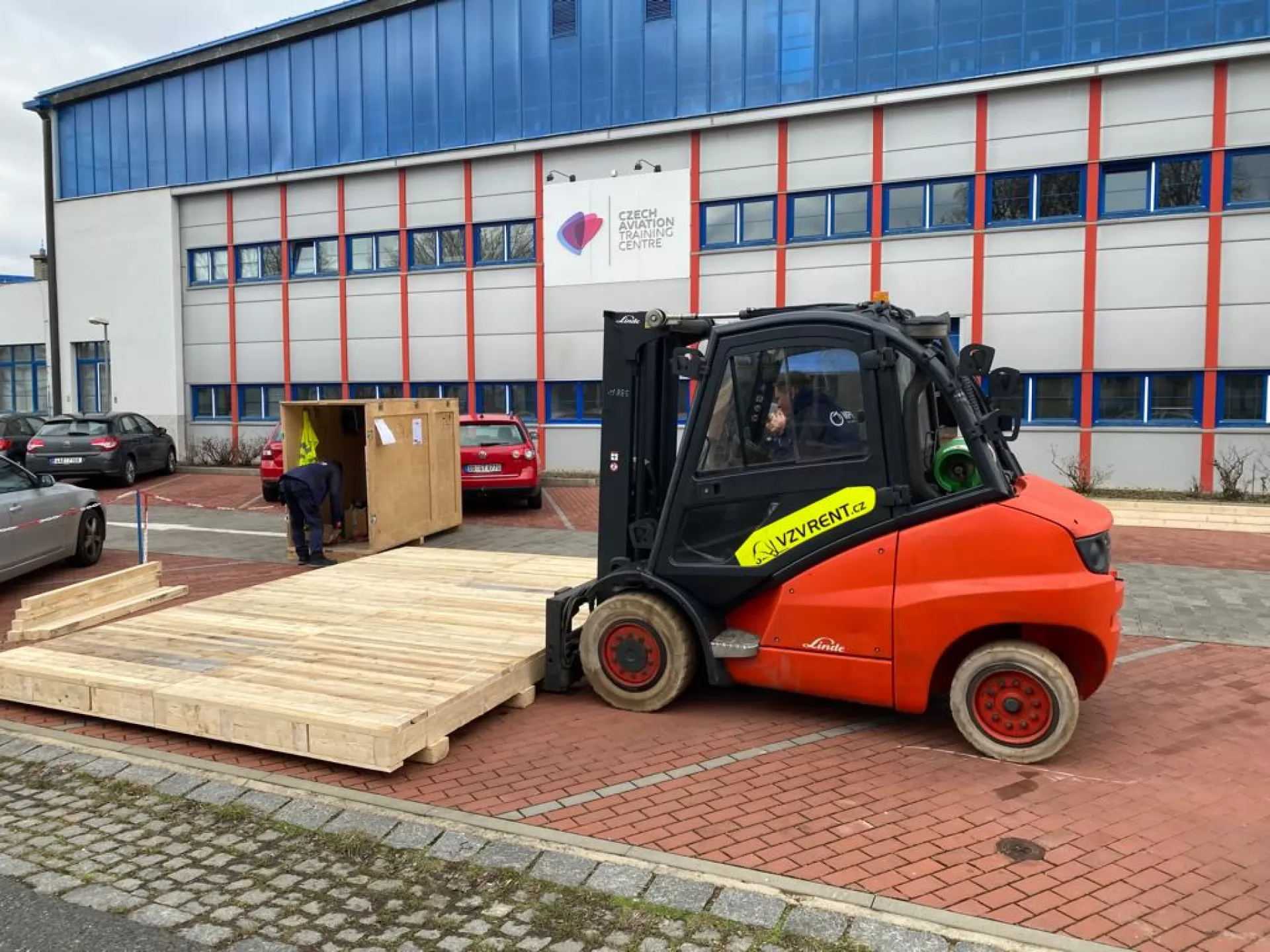 V areálu Letiště Václava Havla, kde sídlí společnost Czech Aviation Training Centre s.r.o., jsme měli další zakázku. O demontáž trenažeru Boeingu 737 se postaraly plynové vozíky Linde, jeden z nich byl vybaven i jeřábovým ramenem. Školící centrum se zabývá výcvikem pilotů, palubních průvodčích a nabízí i spoustu dalších kurzů.