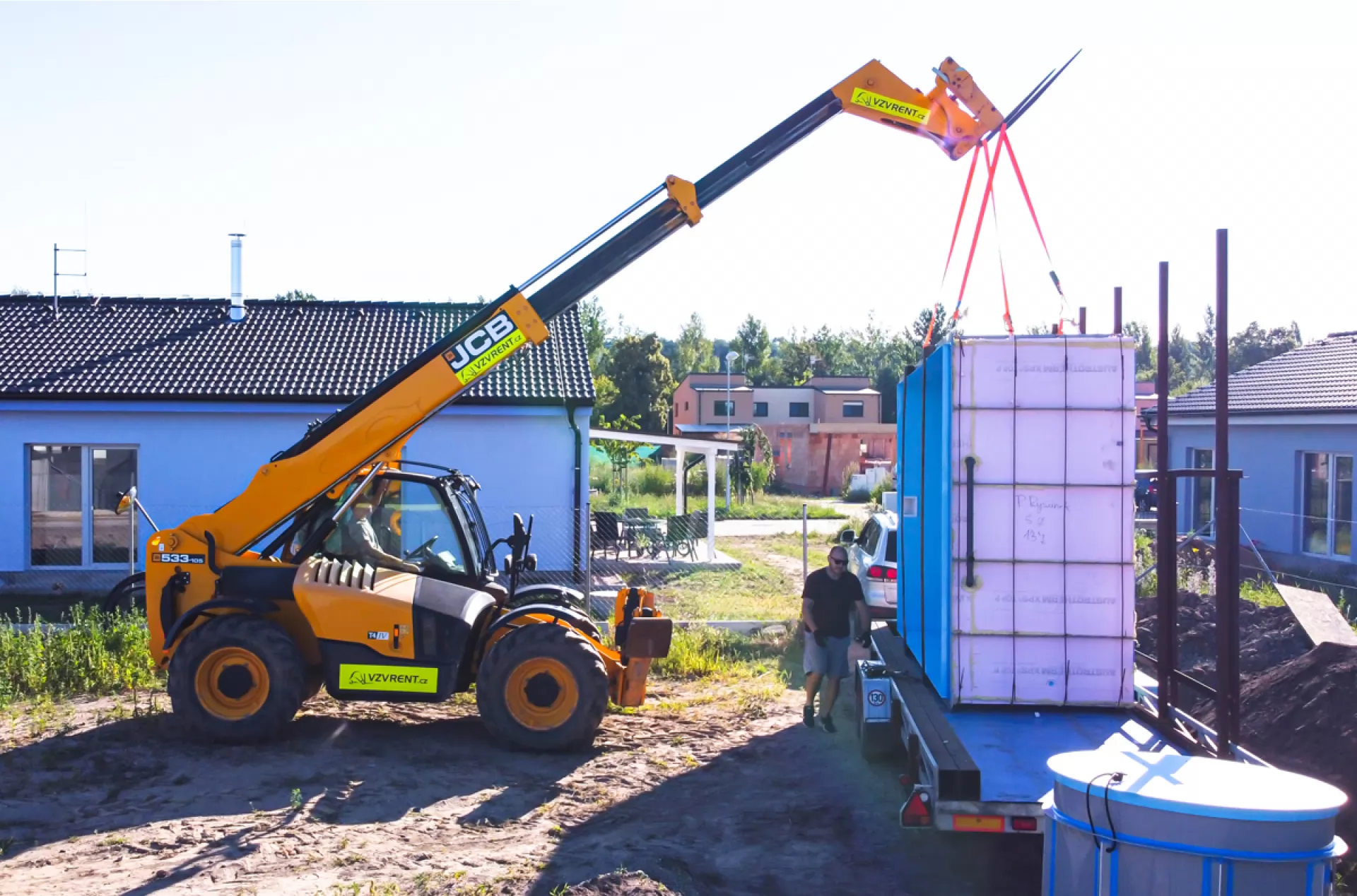 VZVRENT  |   Reference  |   Instalace bazénu pomocí manipulátoru JCB