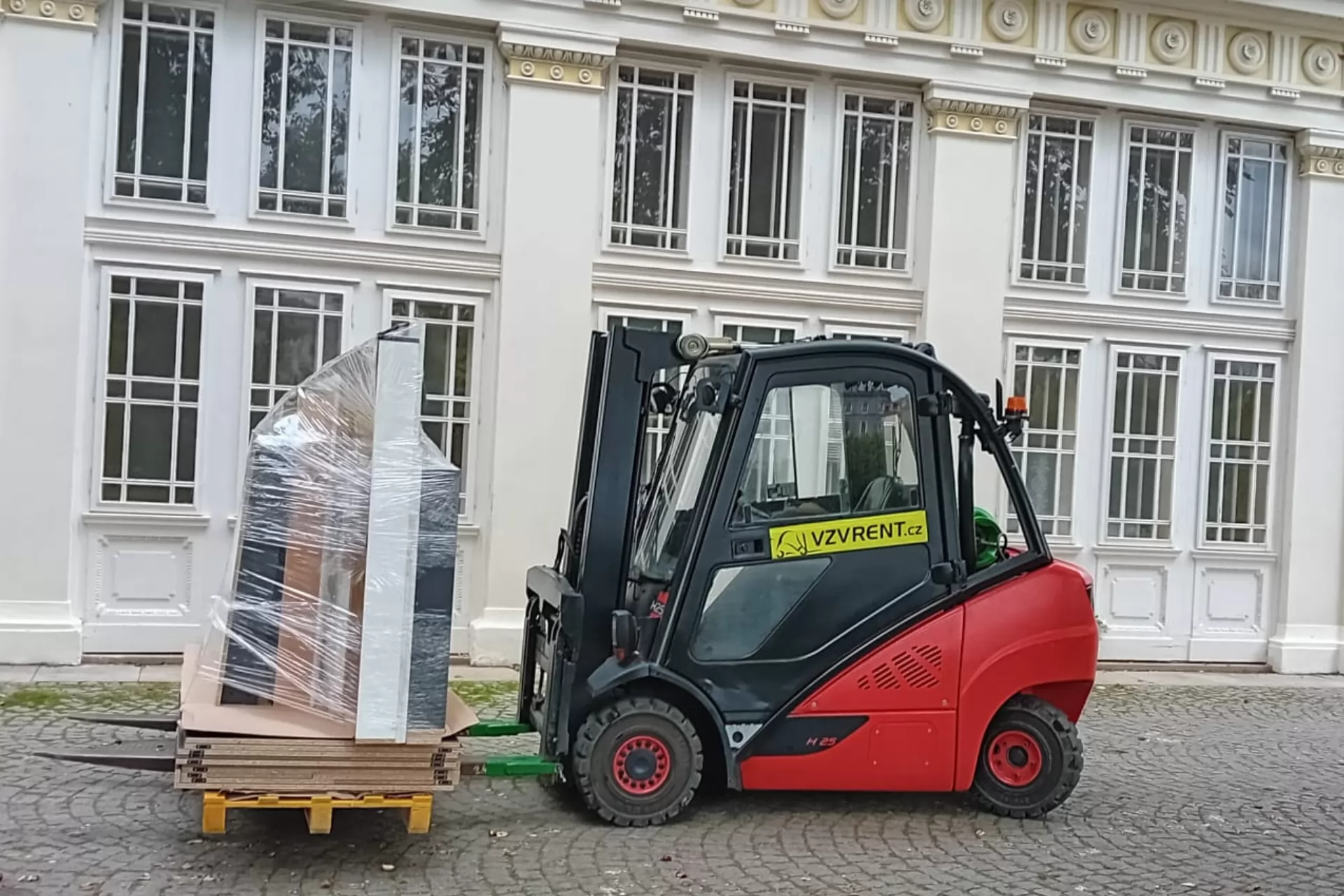 - Praha, Žofín – manipulace s designovým nábytkem při přípravě výstavy, za pomoci Linde H25.