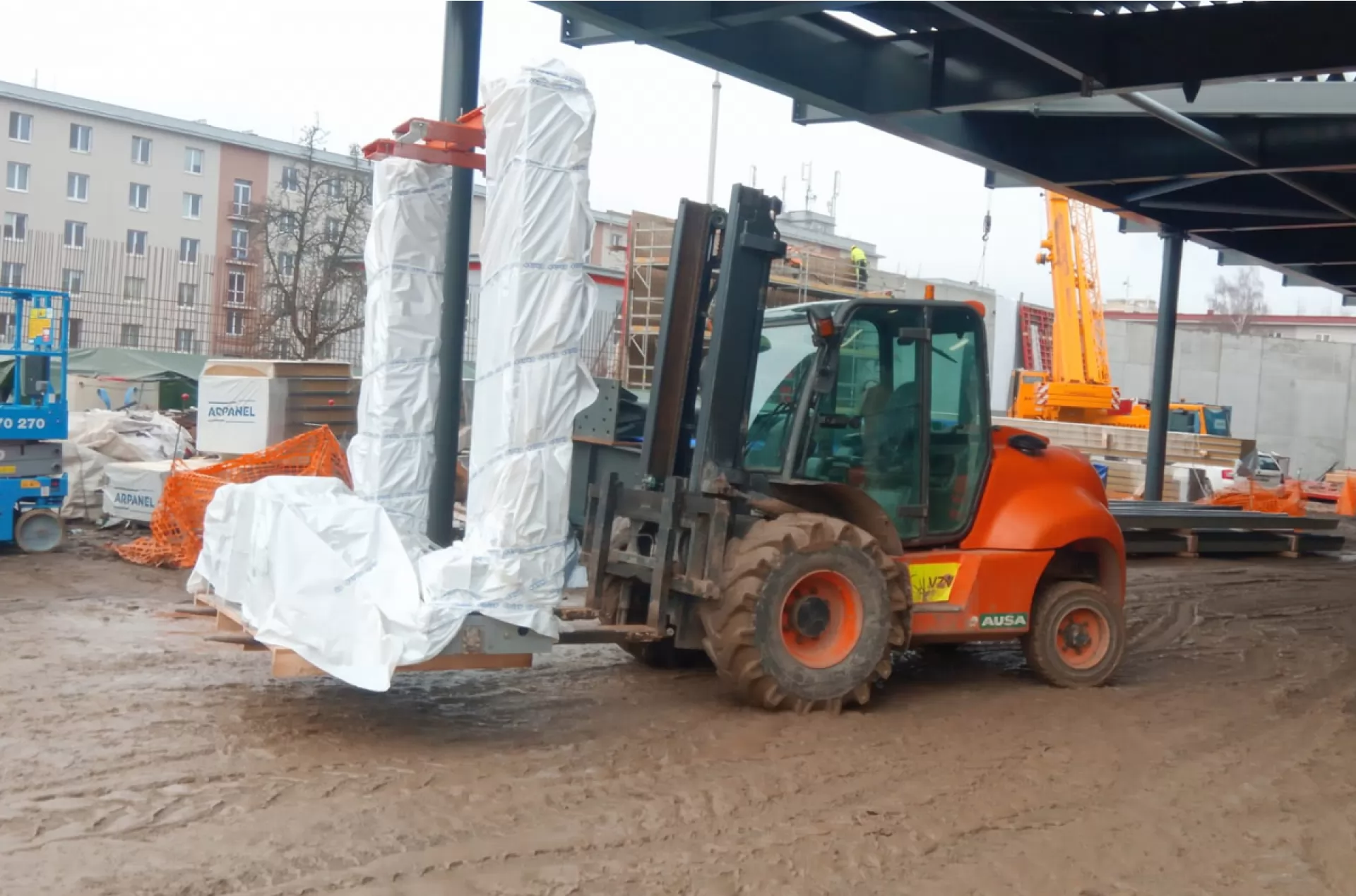 V naší flotile jsou teleskopické manipulátory značek Manitou a JCB. Terénní vysokozdvižné vozíky mají zástupce navíc i od značky Ausa. K dispozici máme terénní vozíky s nosností 5 t a zdvihem 5 m a naše manipulátory zvednou břemeno o váze 5 t až do výšky 21 m.