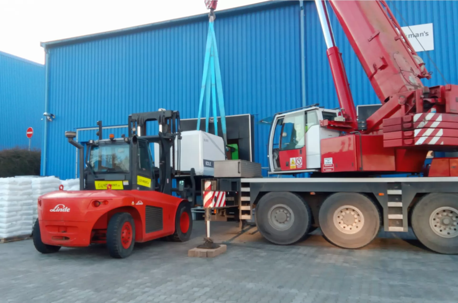Tentokrát byl do služby vyslán těžkotonážní vozík Linde H 150, který zvládne zvednout až 14 tun do výšky 3,60m. Pro společnost Pacman´s pack, specialistu ve výrobě obalů pro potravinářský průmysl, vozík složil a uložil stroj do jedné z jejich výrobních hal.