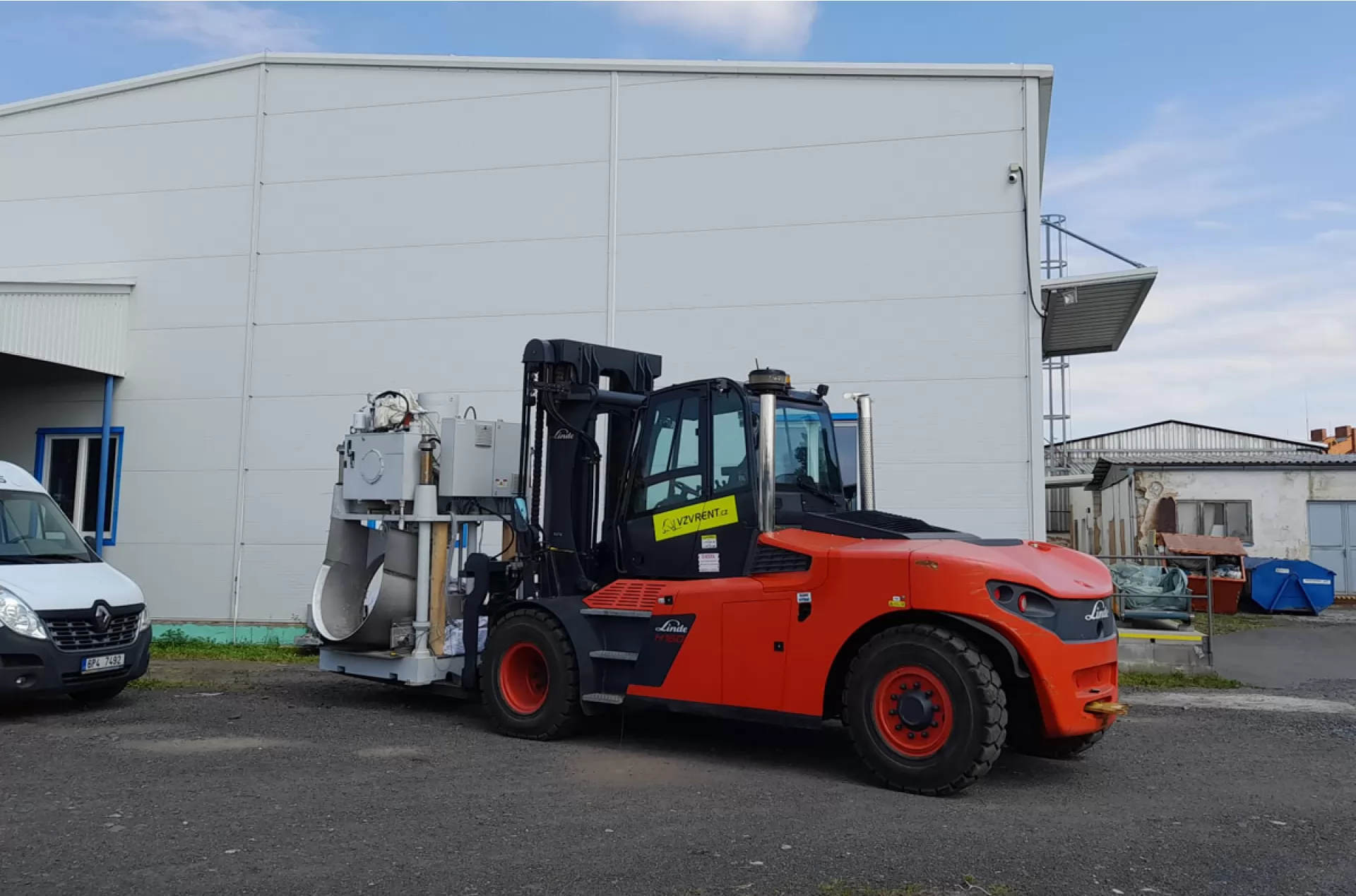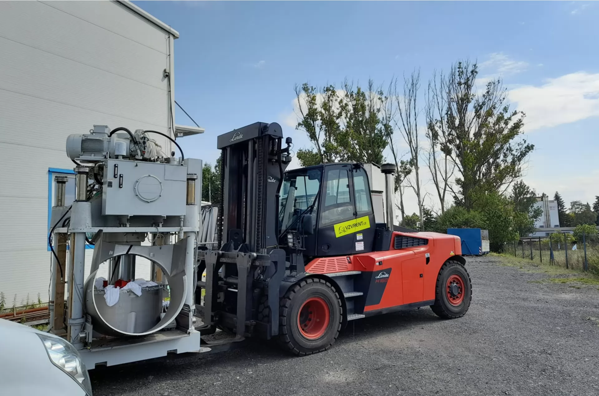 Řidič Martin s vysokozdvižným vozíkem Linde H 160 skládali lis na prádlo v Kralovicích. Naši siláci zvládnou stěhování velmi těžkých břemen a technologických celků levou zadní a díky speciální technice nejsou problém ani haly s omezeným prostorem pro manipulaci.