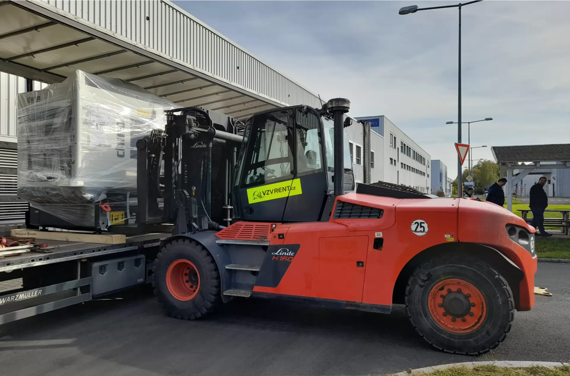V České Lípě využili služeb naší půjčovny a pronajali si jednoho z našich siláku spolu s obsluhou. Řidič Martin skládal CNC frézu a pomocníkem mu byl velkotonážní Linde H 160.