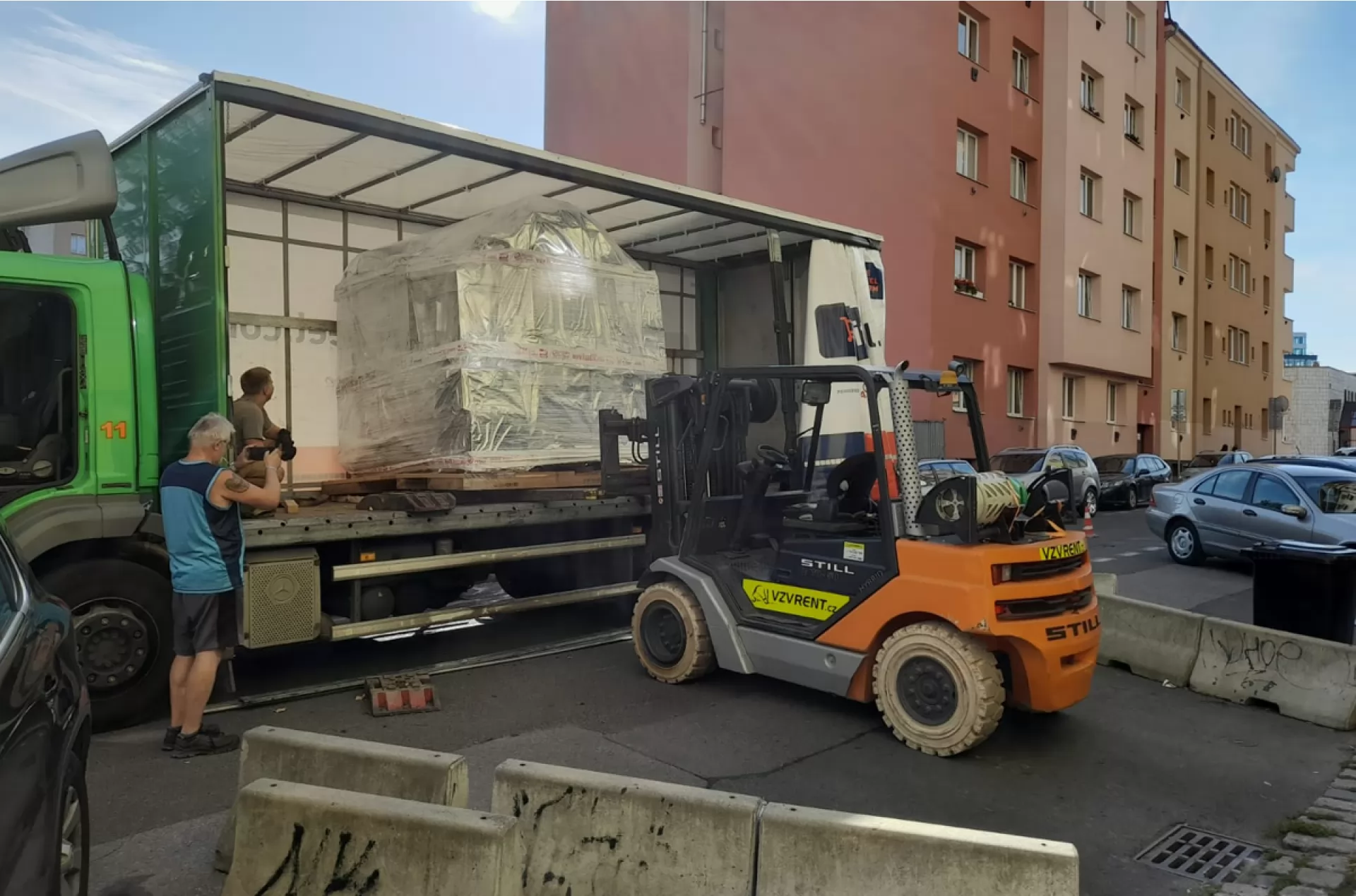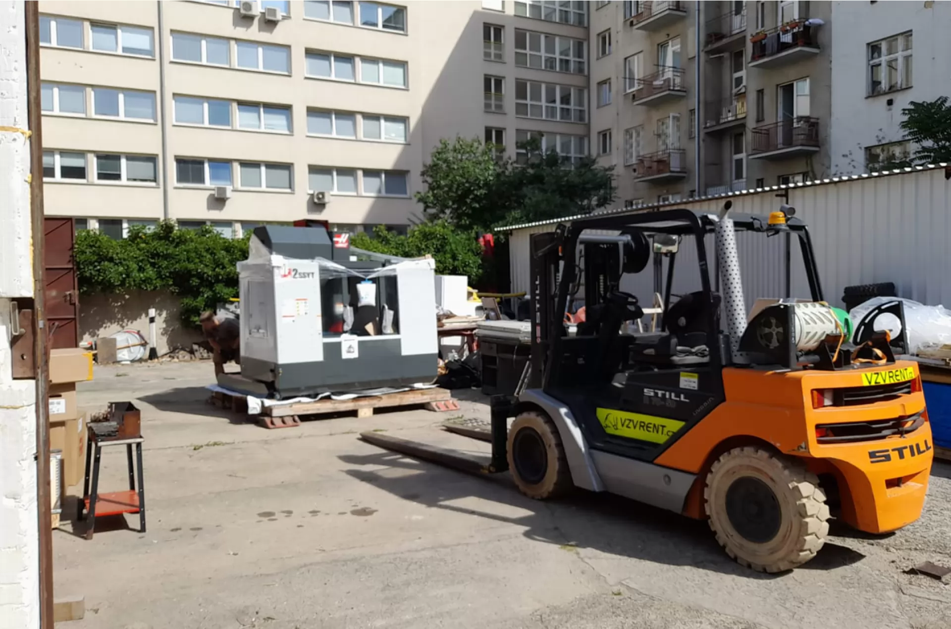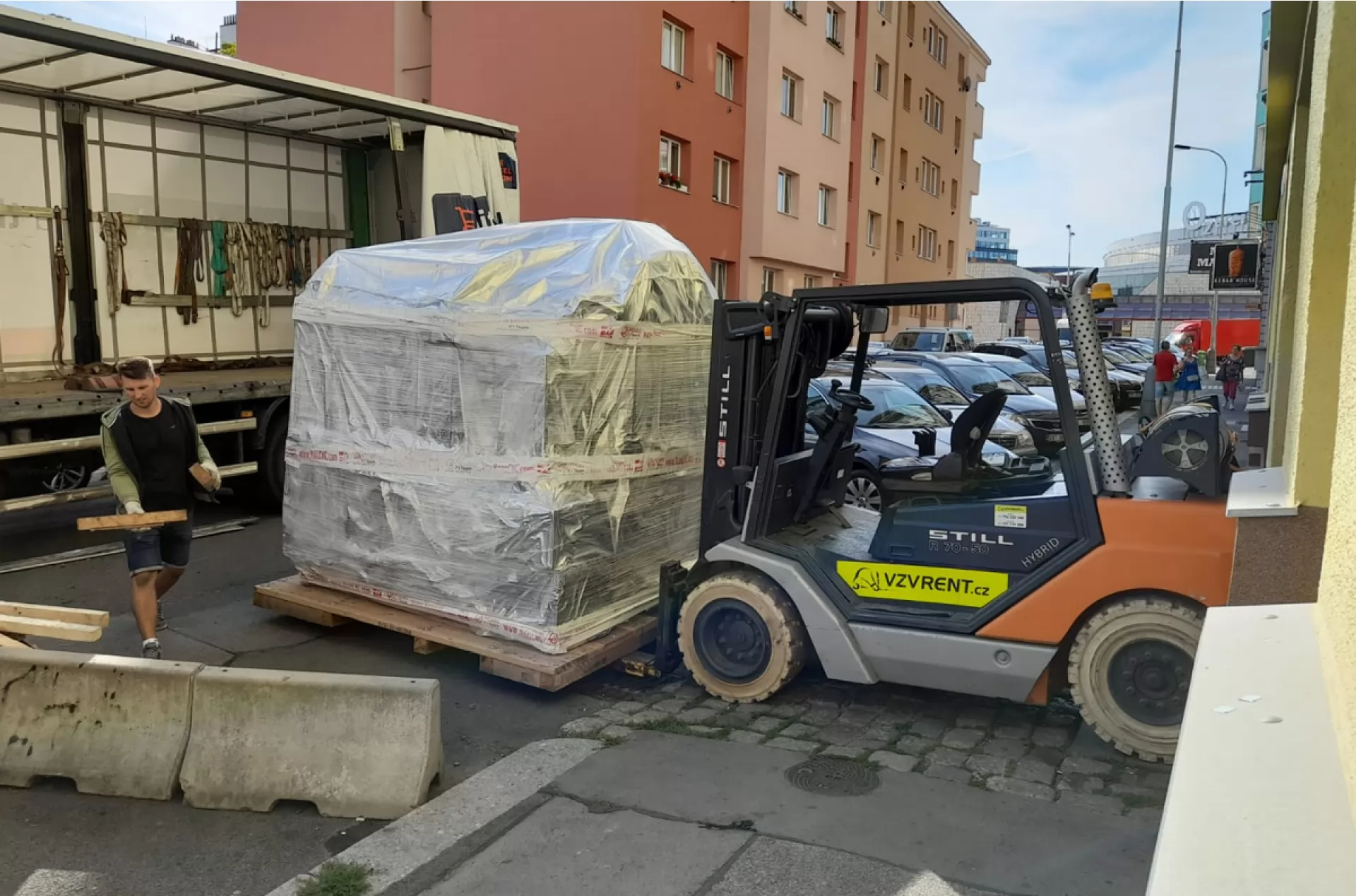 V Praze bylo potřeba složení CNC stroje. Této akce se ujal náš zkušený řidič Martin s vysokozdvižným vozíkem Still R 70-50 T s LPG motorem a stroj pro klienta složili do garáže.