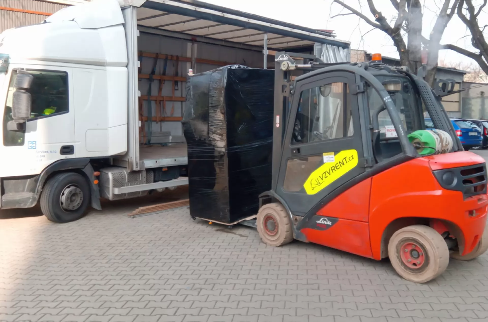 Společnost Jablotron využila služeb naší půjčovny VZV Rent a zapůjčila si vysokozdvižný vozík LINDE H 25 T s LPG pohonem. Protože se firma Jablotron zabývá zabezpečovacími systémy, obsah nákladu zůstal tajný.