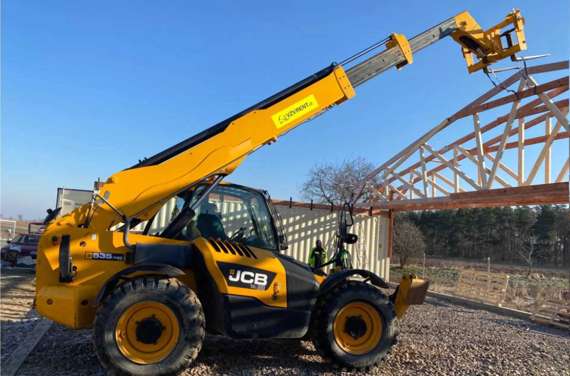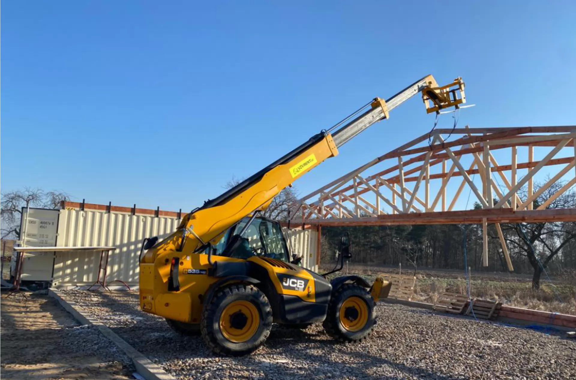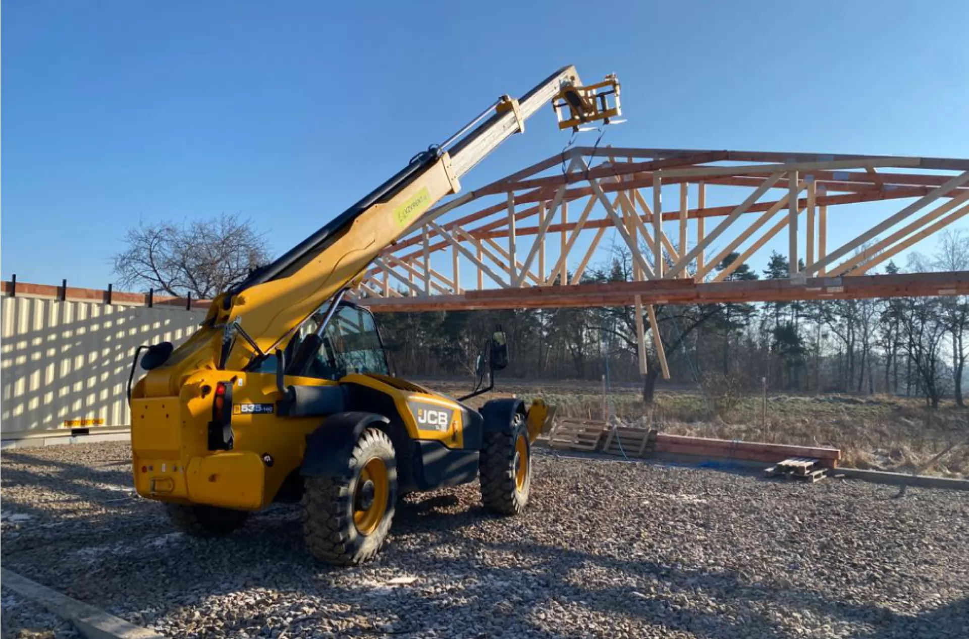 Teleskopický manipulátor JCB 535-140 se předvedl v plné síle při stavbě hangáru na soukromém letišti.