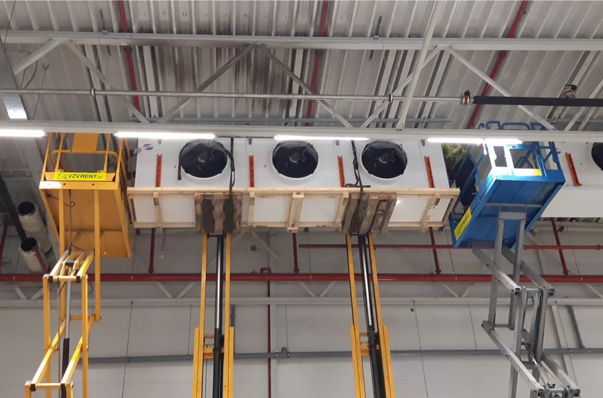 Náš dlouholetý zákazník EAH dokončil výměnu 37 výparníků ve skladu společnosti Ahold v Olomouci. Použitá technika - retraky se zdvihem 12 metrů a nůžkové elektrické plošiny s pracovní výškou 12 metrů.