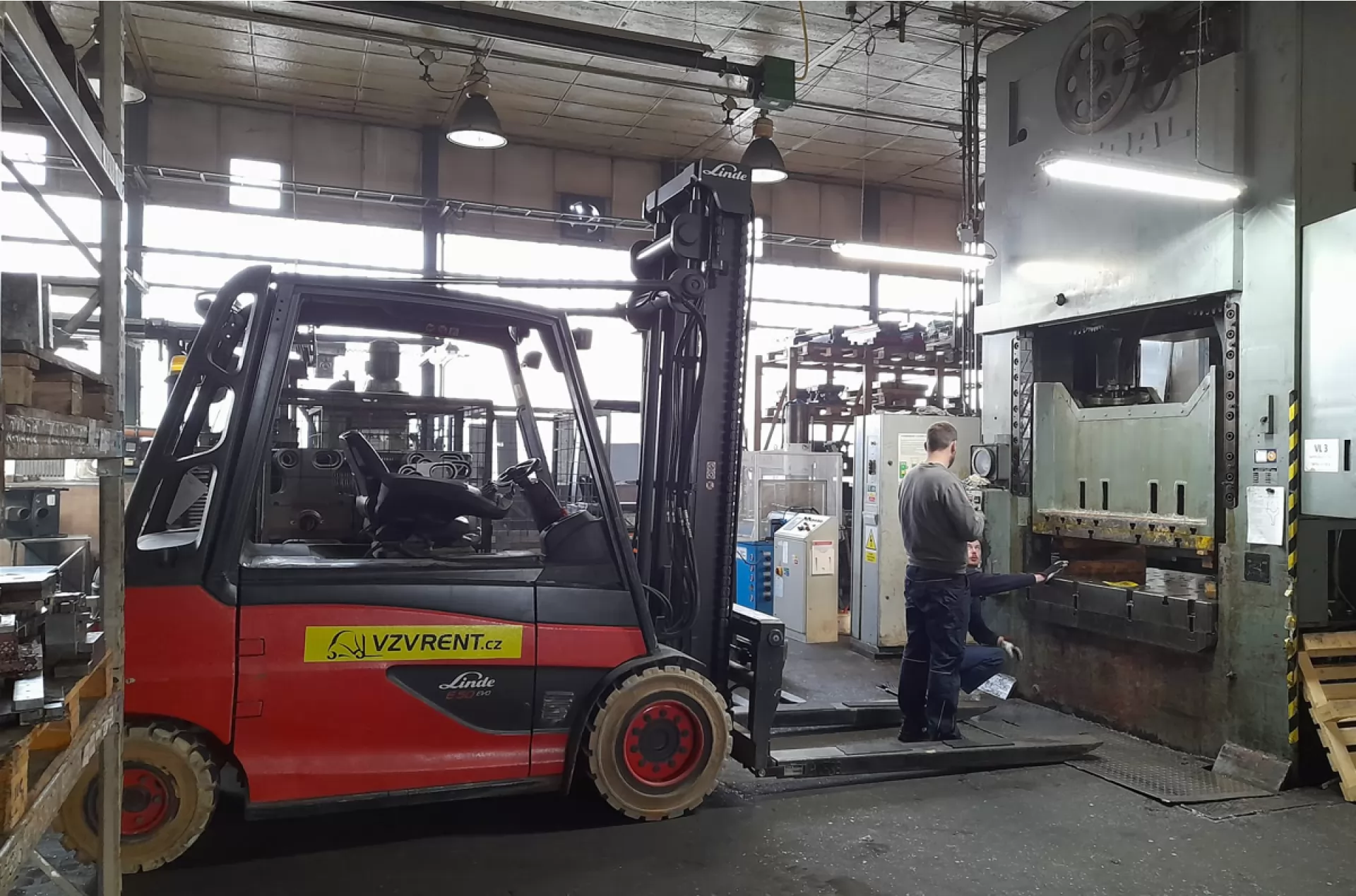 Tentokrát byl k pronájmu z naší flotily vybrán elektrický vysokozdvižný vozík Linde E 50 HL-01. V Českém Brodě byl spolu s ním vytažen bern z lisu o váze 5 tun. Elektrický vozík má nulové emise a nízkou hladinu zvuku, to je v kombinace s nešpinícími pneumatikami ideální pro provoz v halách.