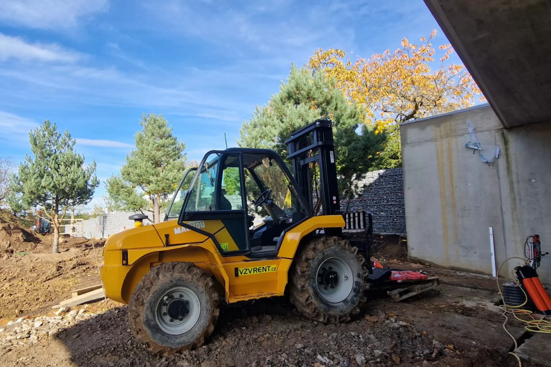 Při stavbě rodinného domu jsme nasadili terénní vysokozdvižný vozík Manitou M 40-4, který se osvědčil při manipulaci s těžkými a velmi hodnotnými kameny.